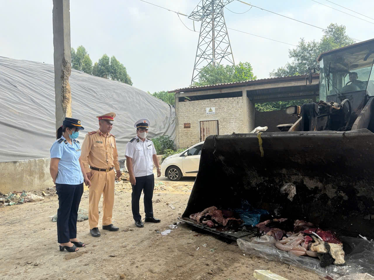 Chị cục Chăn nuôi và Thú y Phú Thọ; phối hợp Đội Quản Lý Thị trường số 8; Phòng CSGT Công An tỉnh kiểm tra phương tiện ô tô vận chuyển nội tạng động vật.