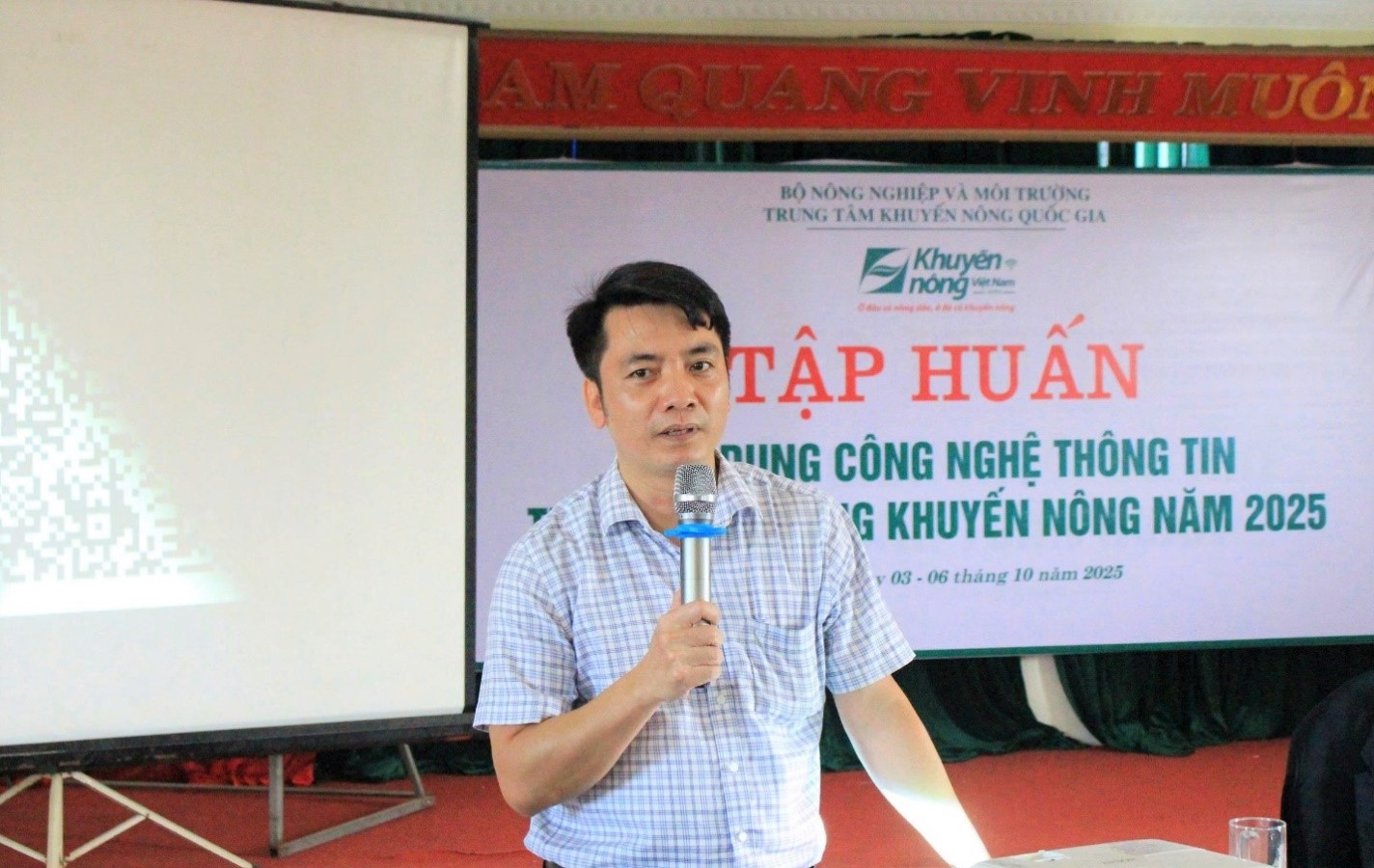 Phát biểu khai mạc lớp tập huấn, ông Lê Minh Lịnh, Phó Giám đốc Trung tâm Khuyến nông quốc gia cho biết: Ứng dụng công nghệ thông tin và chuyển đổi số đang được triển khai mạnh mẽ trên mọi lĩnh vực đời sống xã hội ở mọi quốc gia và đây là xu thế tất yếu trong giai đoạn hiện nay. Trong bối cảnh cách mạng công nghiệp lần thứ 4, AI và chuyển đổi số không còn là xu hướng, mà là tất yếu ngành nông nghiệp muốn phát triển hiện đại thì khuyến nông phải đi đầu trong đổi mới phương thức truyền tải tri thức.