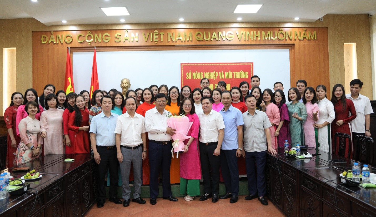 Đồng chí Nguyễn Huy Nhuận, Tỉnh Ủy viên, Giám đốc Sở; các đồng chí Phó Giám đốc Sở Nông nghiệp và Môi trường đã tặng hoa và chụp ảnh lưu niệm cùng các đồng chí nữ cán bộ cán bộ cơ quan Văn phòng Sở