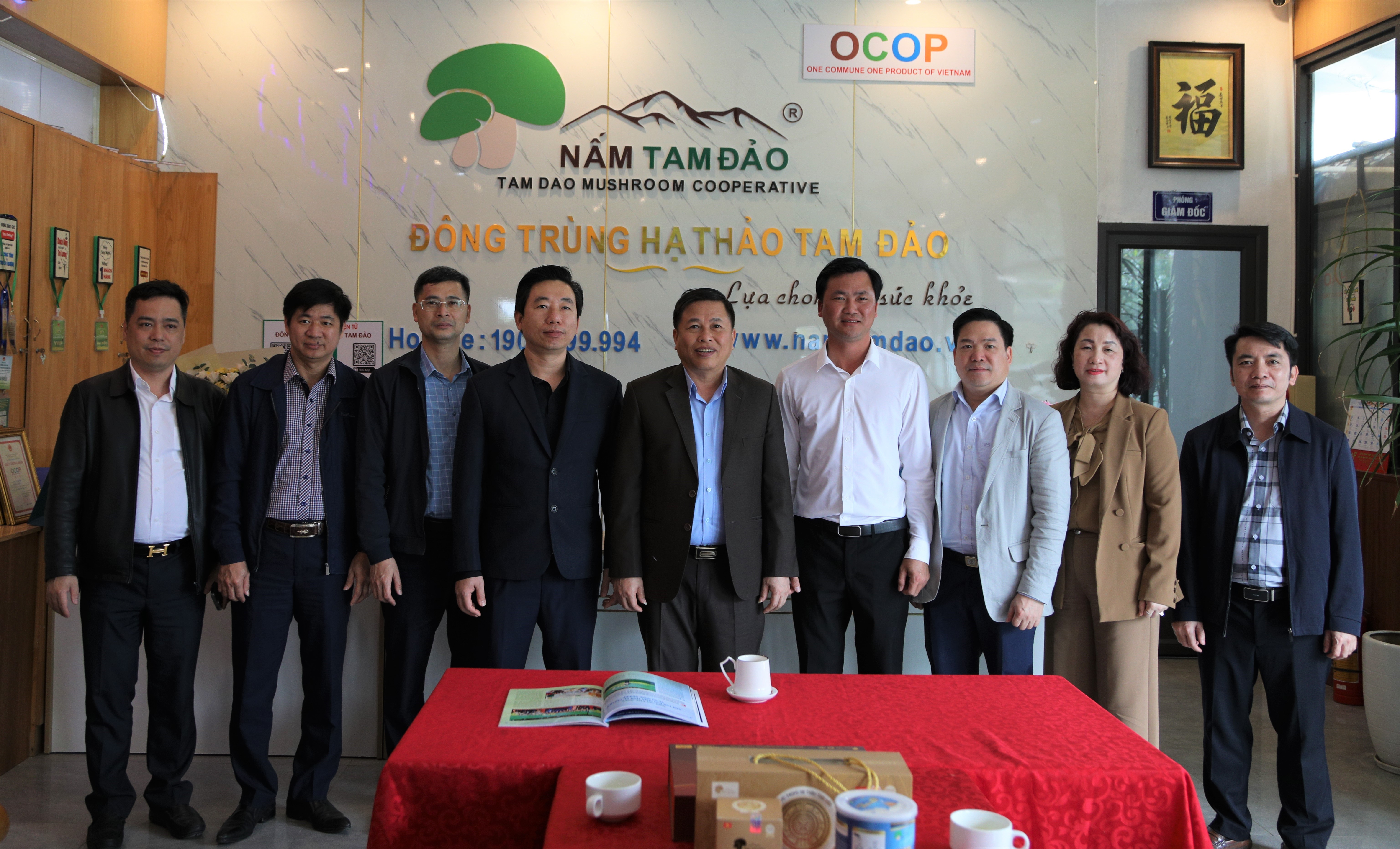 Tại xã Tam Đảo, Phó Chủ tịch UBND tỉnh Đinh Công Sứ tới thăm mô hình sản xuất của HTX Nấm Tam Đảo. HTX Nấm Tam Đảo được thành lập từ năm 2009 với sản phẩm chủ yếu là nấm bào ngư và nấm linh chi, trải qua quá trình phát triển HTX đã thay đổi tư duy sản xuất, ứng dụng khoa học - công nghệ. HTX đã nghiên cứu và nuôi cấy thành công chủng nấm đông trùng hạ thảo Cordycep militaris loại nấm có giá trị kinh tế và dược tính cao, được thị trường rất ưa chuộng. Từ lợi thế đó HTX chuyển sang sản xuất, chế biến sâu các các sản phẩm từ nấm, đông trùng hạ thảo, với 19 mẫu sản phẩm, trong đó có 13 sản phẩm được đánh giá công nhận sản phẩm OCOP.