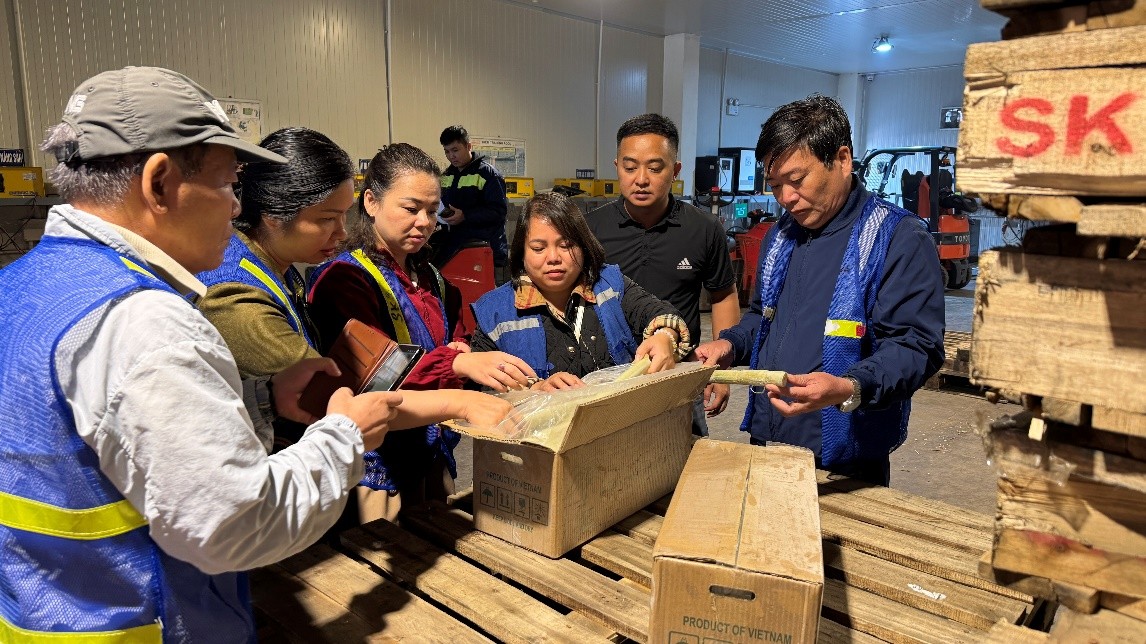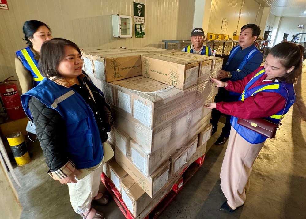 Lãnh đạo Chi cục Trồng trọt và Bảo vệ thực vật kiểm tra sản phẩm mía cấp đông sang thị trường Hàn Quốc