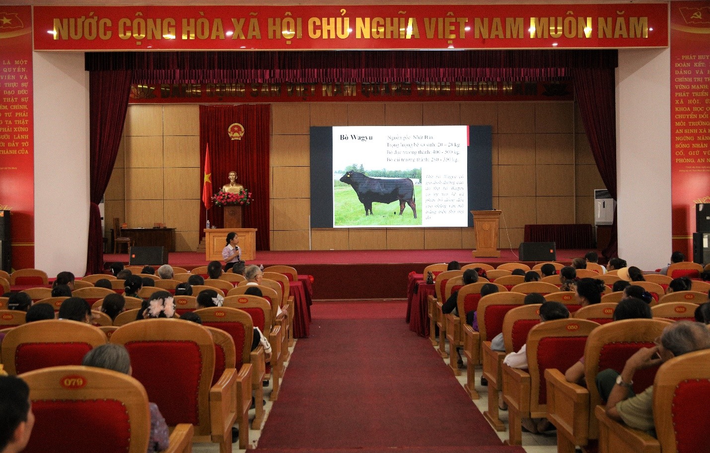 Toàn cảnh hội nghị tập huấn hướng dẫn chuyển giao tiến bộ kỹ thuật trong sản xuất nông nghiệp tại xã Thái Hòa